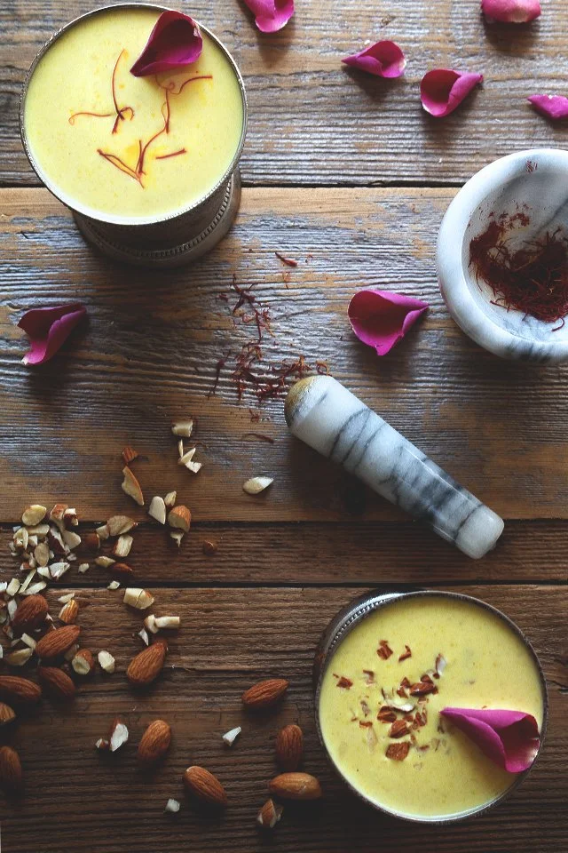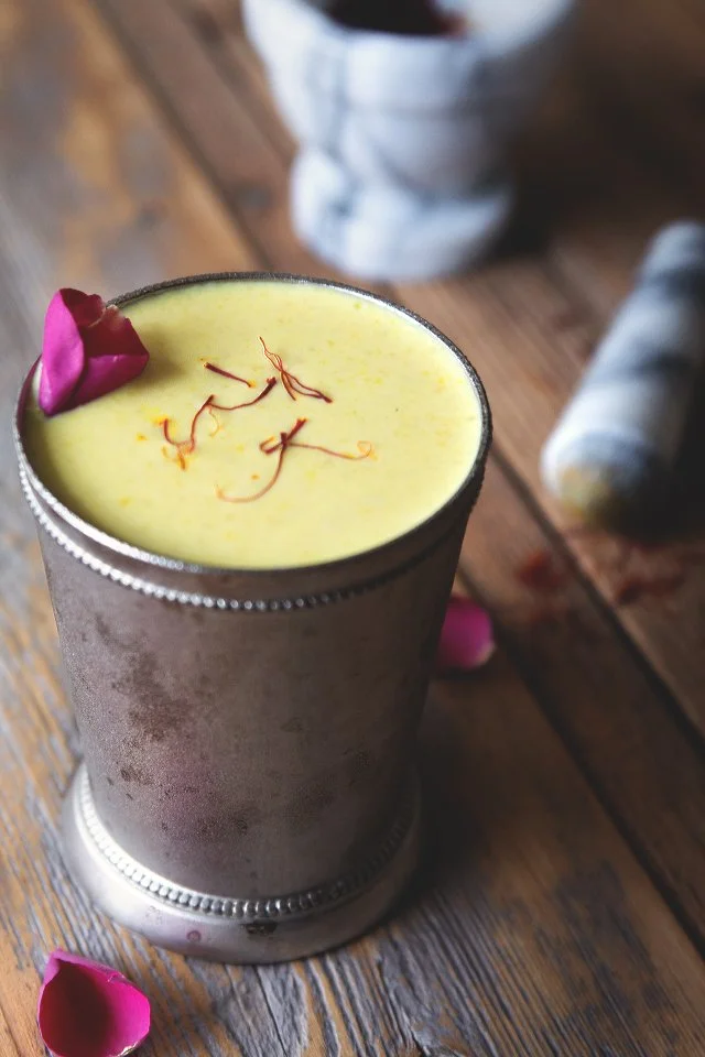 I recently stumbled upon this delightful Indian drink that had me more than a little intrigued. I’m not usually a big milk drinker, but when I saw it contained cardamom, saffron, and rosewater, I knew I had to give it a try. Sure enough, I was hooked. Sweet, creamy and absolutely exploding with aromatics, it’s the perfect end-of-summer treat!