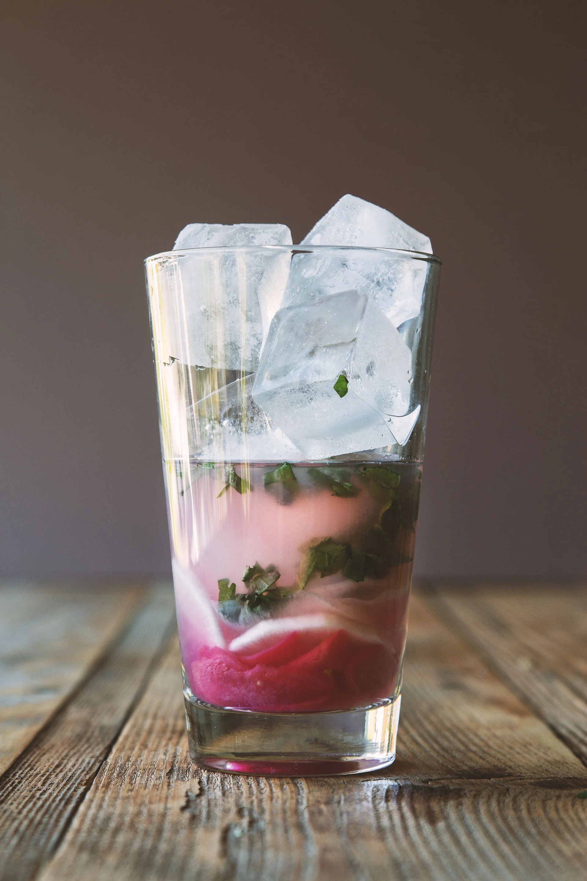This is what I love about cocktails!! Incorporating savory ingredients like fresh herbs and pickled roots keeps things interesting to say the least. So when Karen told me she was getting her grilled kimcheese on, I knew just what to do. Don’t get me wrong, I love a good classic cocktail. I’m a booze nerd, big time. But what really gets me excited is fresh produce. This magical recipe is a Scott Beattie creation (of course). If you’ve never pickled anything before, here’s a good reason to start. So let’s all get creative, shall we? After all, imbibing is meant to be fun!!