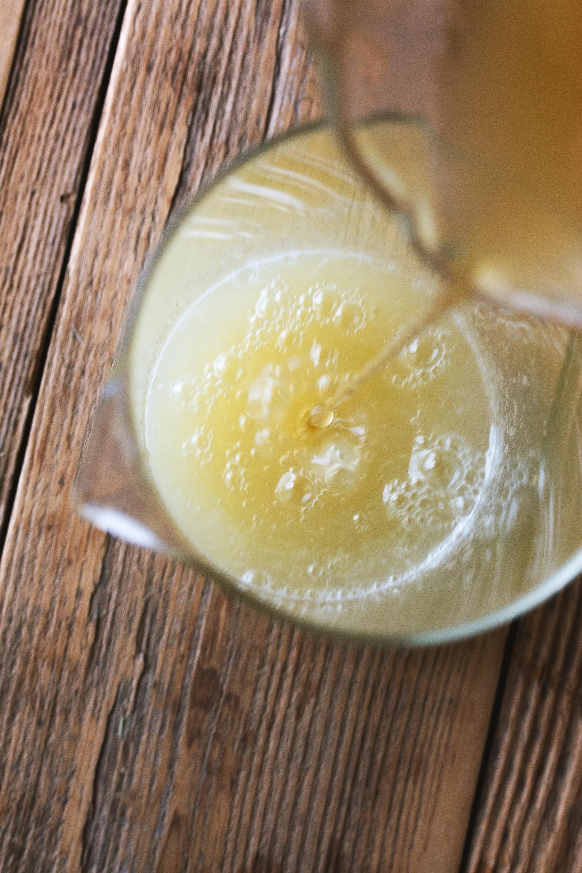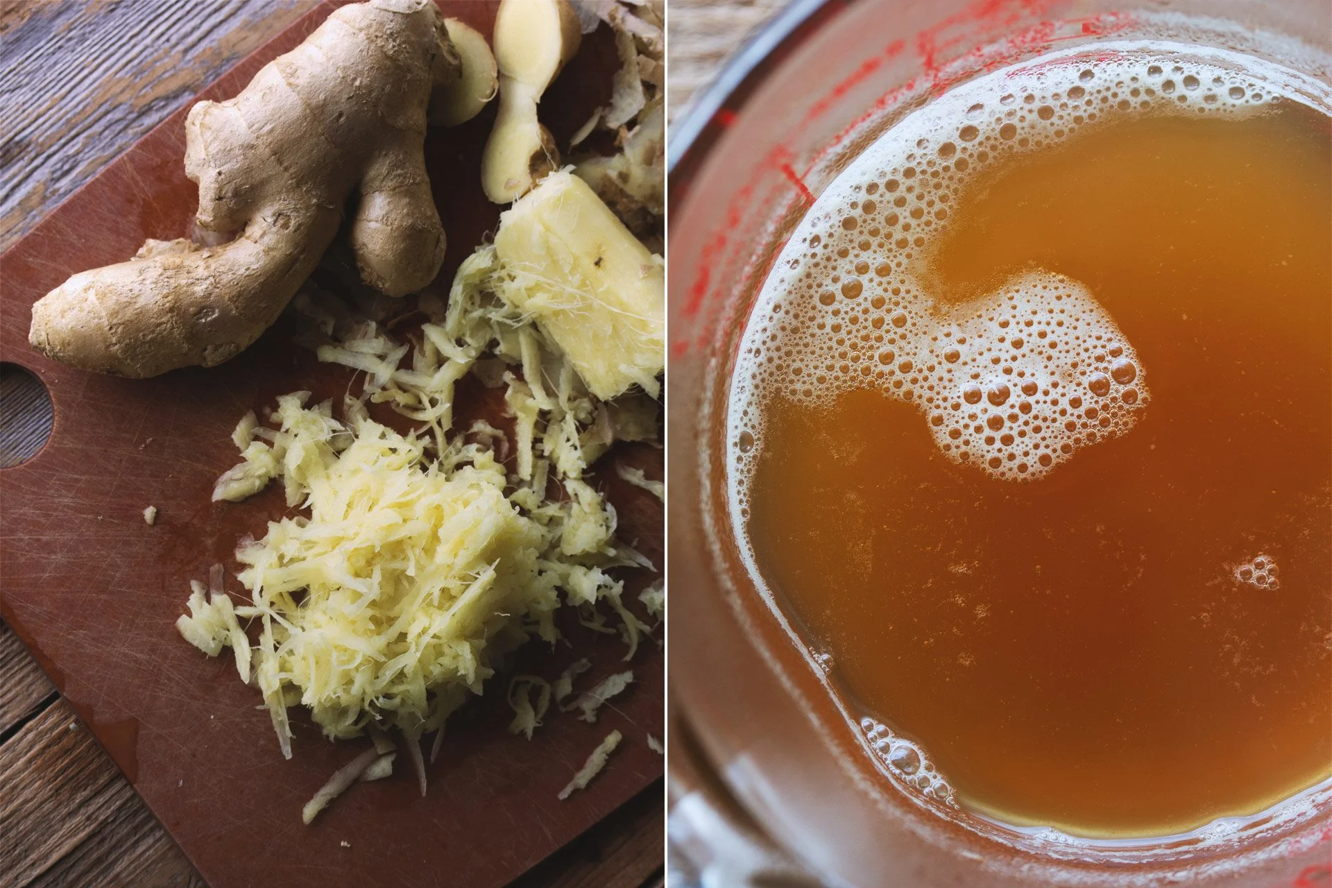 - Once the honey has dissolved into the water, add the grated ginger, turn off the heat, let sit for 5 minutes then strain.