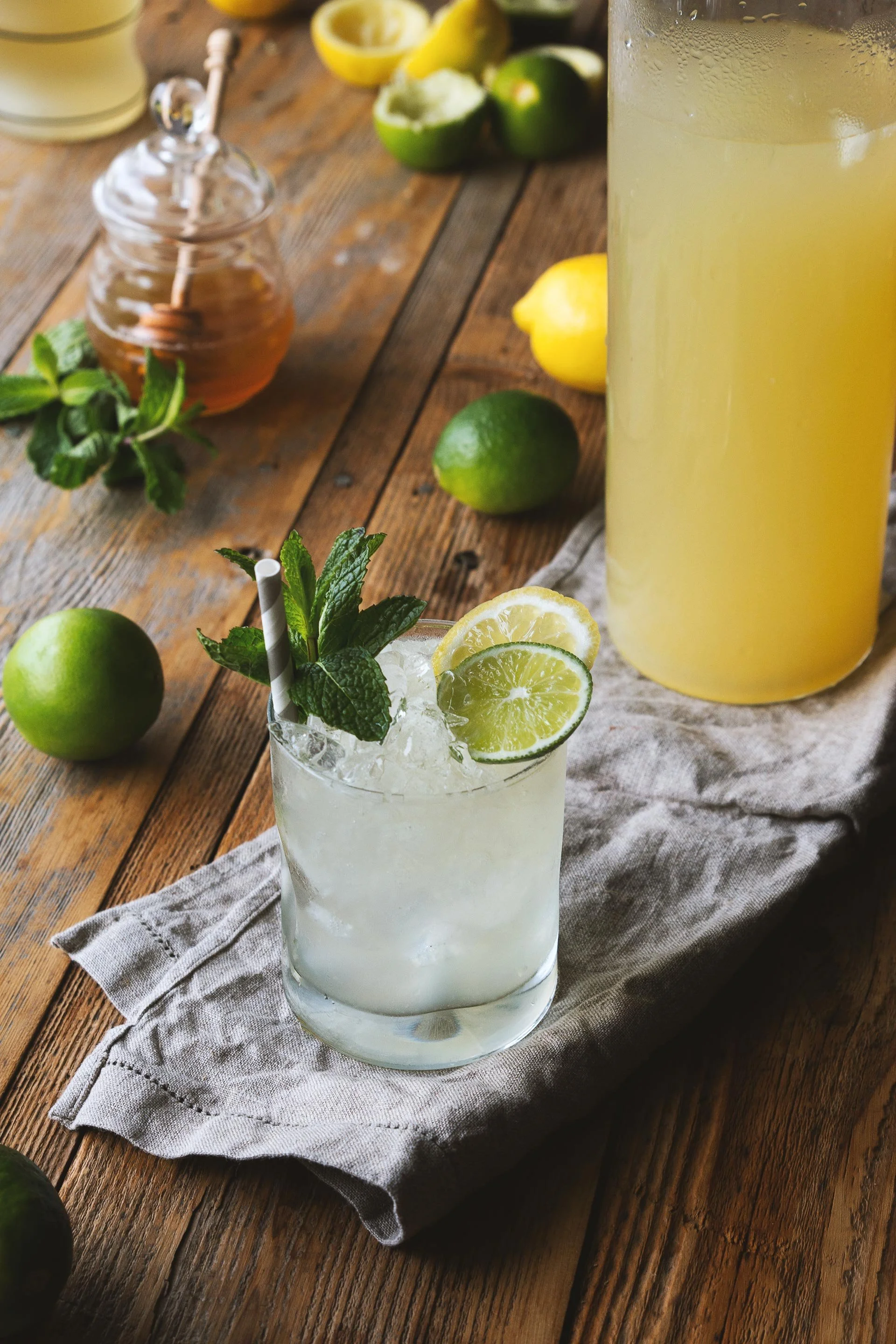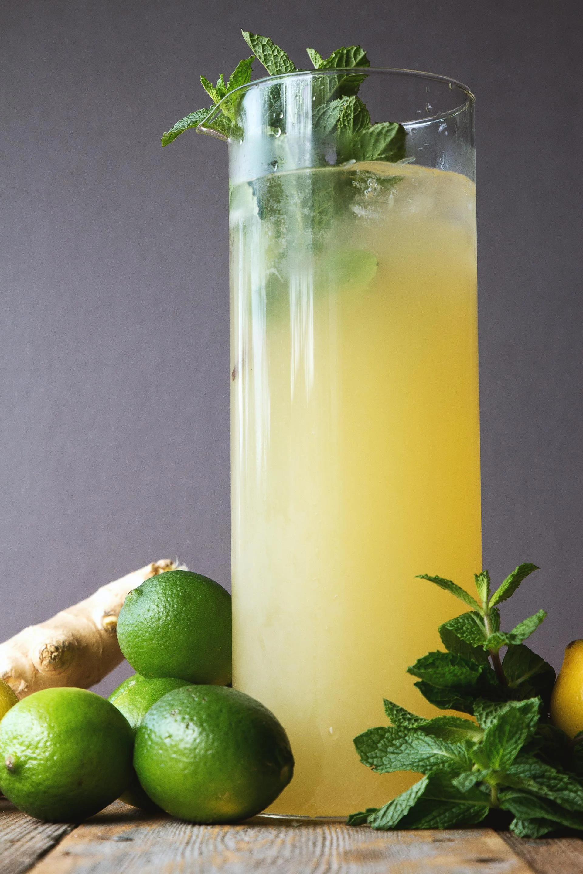 - Serve in individual tumblers over cracked ice and garnish with a sprig of fresh mint.