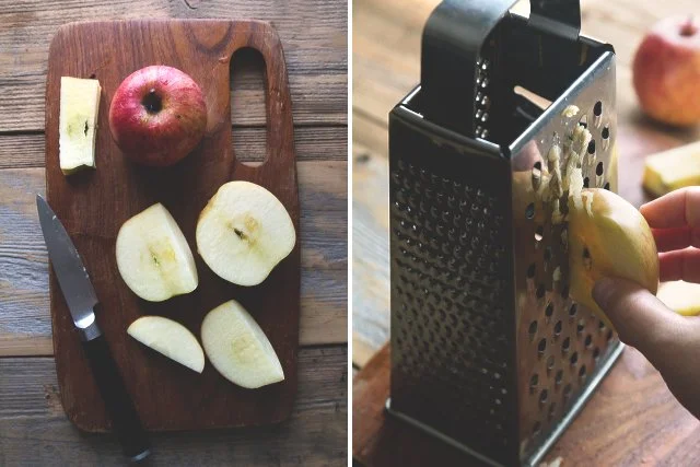 Add the grated apples to a non-reactive mixing bowl, add the sugar and stir to combine. Cover the bowl with plastic wrap and place in the fridge. Let the mixture sit for at least 24 hours.